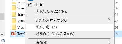 シフトを押しながらパスをコピーしたいファイルを右クリックすると、”パスのコピー”を選べるようになります。