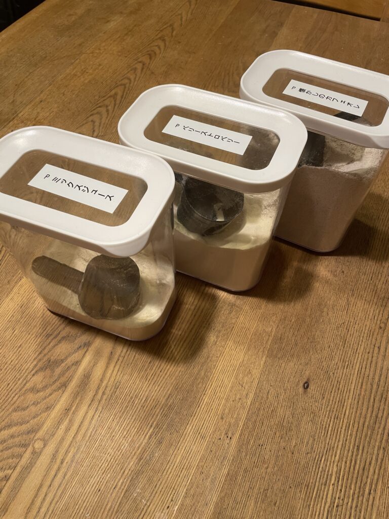 我が家では、家族で飲むので、小分けして調味料のように、好きな味を作りやすくしています(写真)。試して損はないと思うので、体作りにプロテインを飲んでみようという方にはお勧めです!継続しやすいかと思います。