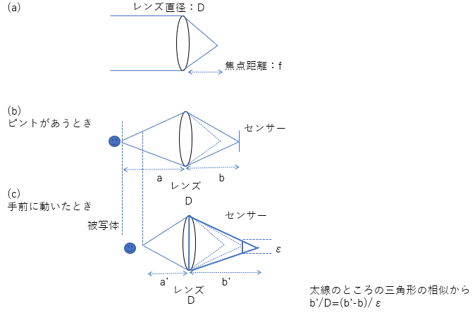 この式を理解しておくと、どんな時にピントがぼけるかわかりますね。