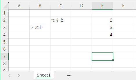 動作確認ように、”test1.xlsx”というエクセルを用意して、中は以下のように書いてください。